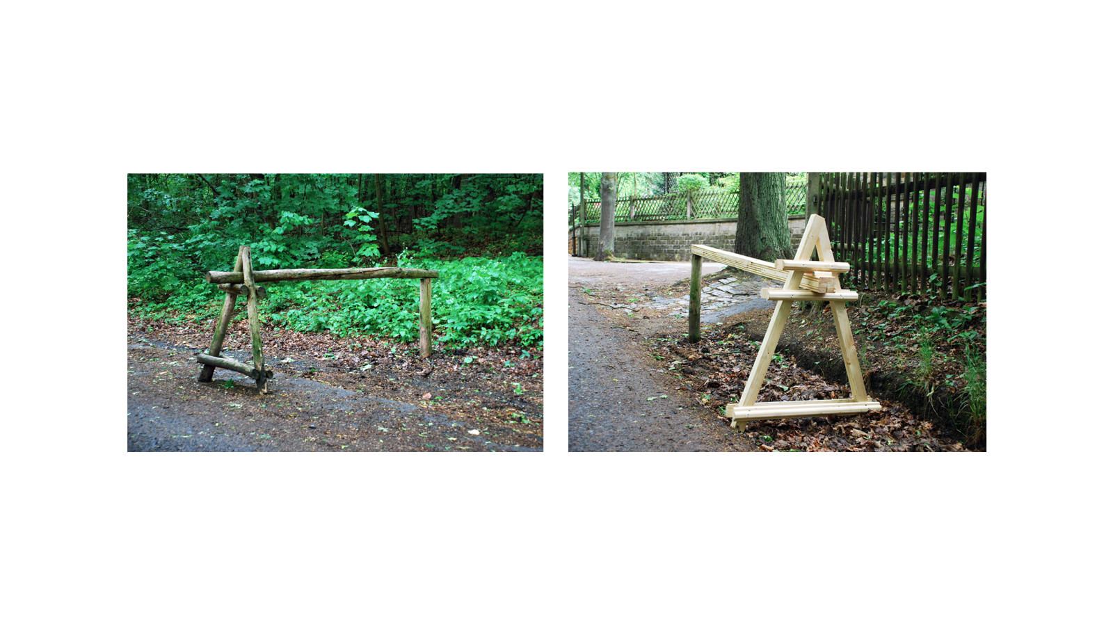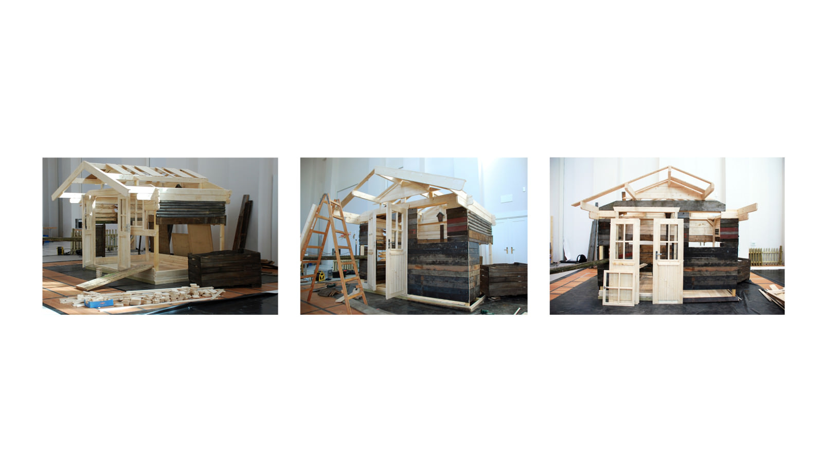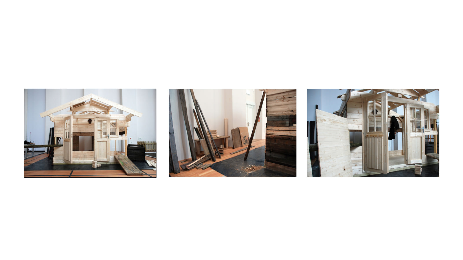Intervention / RauminstallationVom 7. bis zum 27. Mai 2007 tragen Hofmann&Lindholm Stück für Stück einer Schrebergartenhütte ab, die sie zuvor im Festspielhaus Hellerau aufgebaut hatten. Getauscht werden Bretter, Schrauben oder Beschläge gegen Holz- und Metallelemente, die im öffentlichen Raum der Stadt Dresden zu entdecken sind. Elemente der Hütte nehmen stellvertretend ihren Platz im öffentlichen Raum der Stadt ein, während umgekehrt die Fundstücke aus dem öffentlichen Raum der Stabilität der Hütte im Festspielhaus dienen.