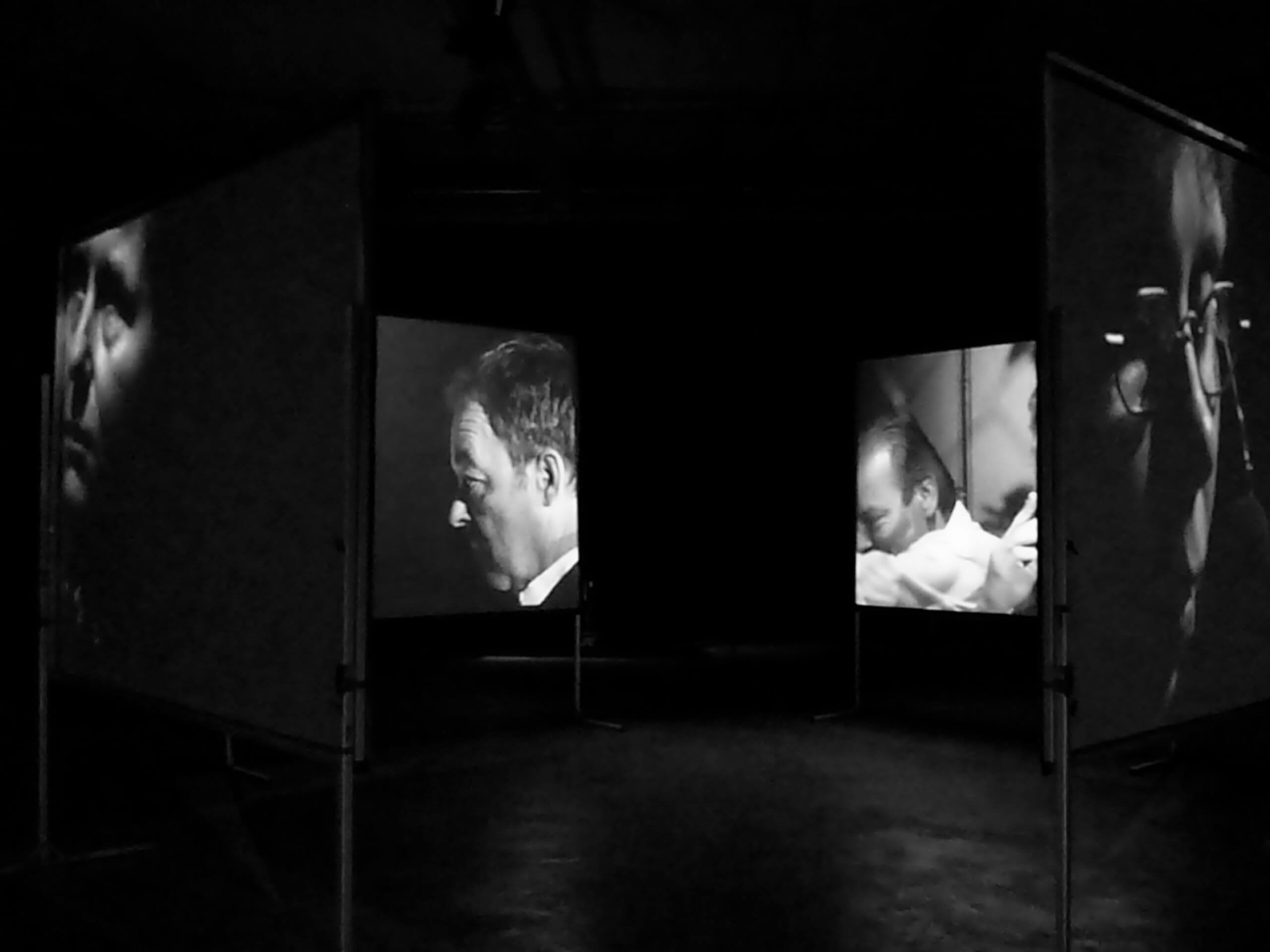 Das Videostück 'Vergessene Bühnentexte' zeigt eine Verknüpfung von Momenten des Vergessens und Aus-der-Rolle-Gleitens auf vier einander gegenüber stehenden Projektionsflächen. Zu sehen sind Schauspieler_Innen, die während der Proben aufgrund eines Texthängers aus der Rolle fallen, den soufflierten Text aufnehmen und in die Rolle zurückkehren. Zu hören sind die zugeflüsterten, die soufflierten Worte und Fragmente, die sich in der Installation zu einer Montage vergessener Bühnentexte verdichten.